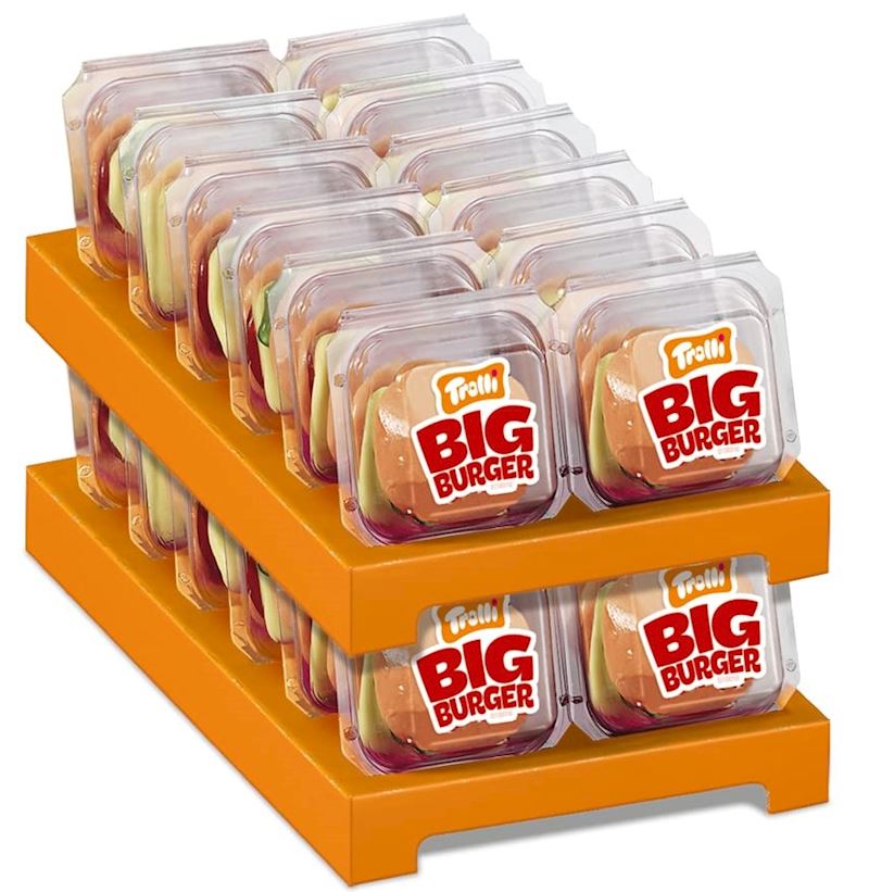 Der Trolli Big Burger ist der kultige Fruchtgummi-Snack im XL-Format. Saftig-weiche Schaumzucker- und Fruchtgummischichten formen einen detailreichen „Burger“, der fruchtig-süss schmeckt und gleichzeitig ein echter Hingucker ist. Perfekt als Spasssnack, Geschenk oder Party-Gag, der Big Burger sorgt überall für ein Lächeln.